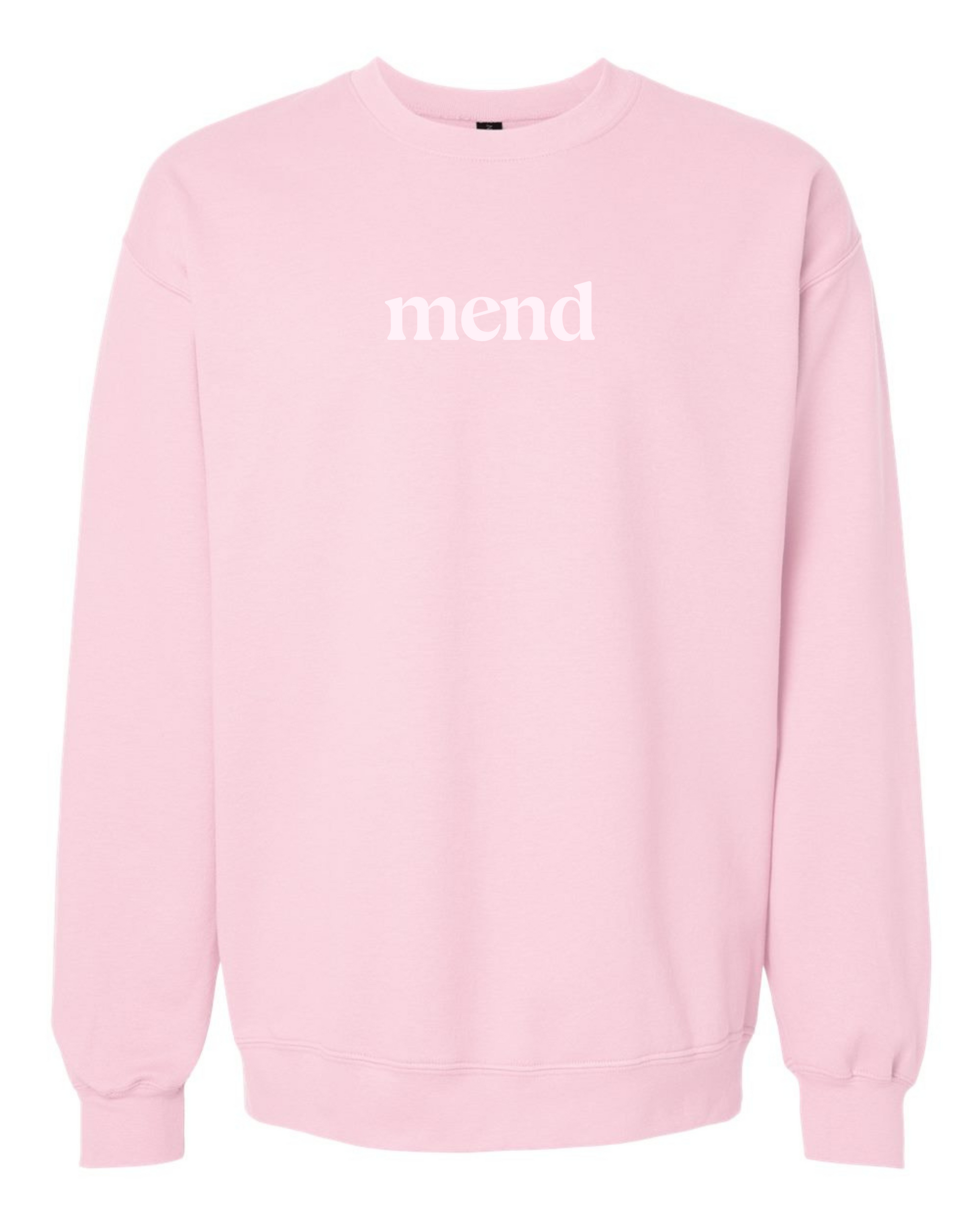 Embroidered crewneck -- a monochromatic look with our Mend logo matching the color of the crewneck.